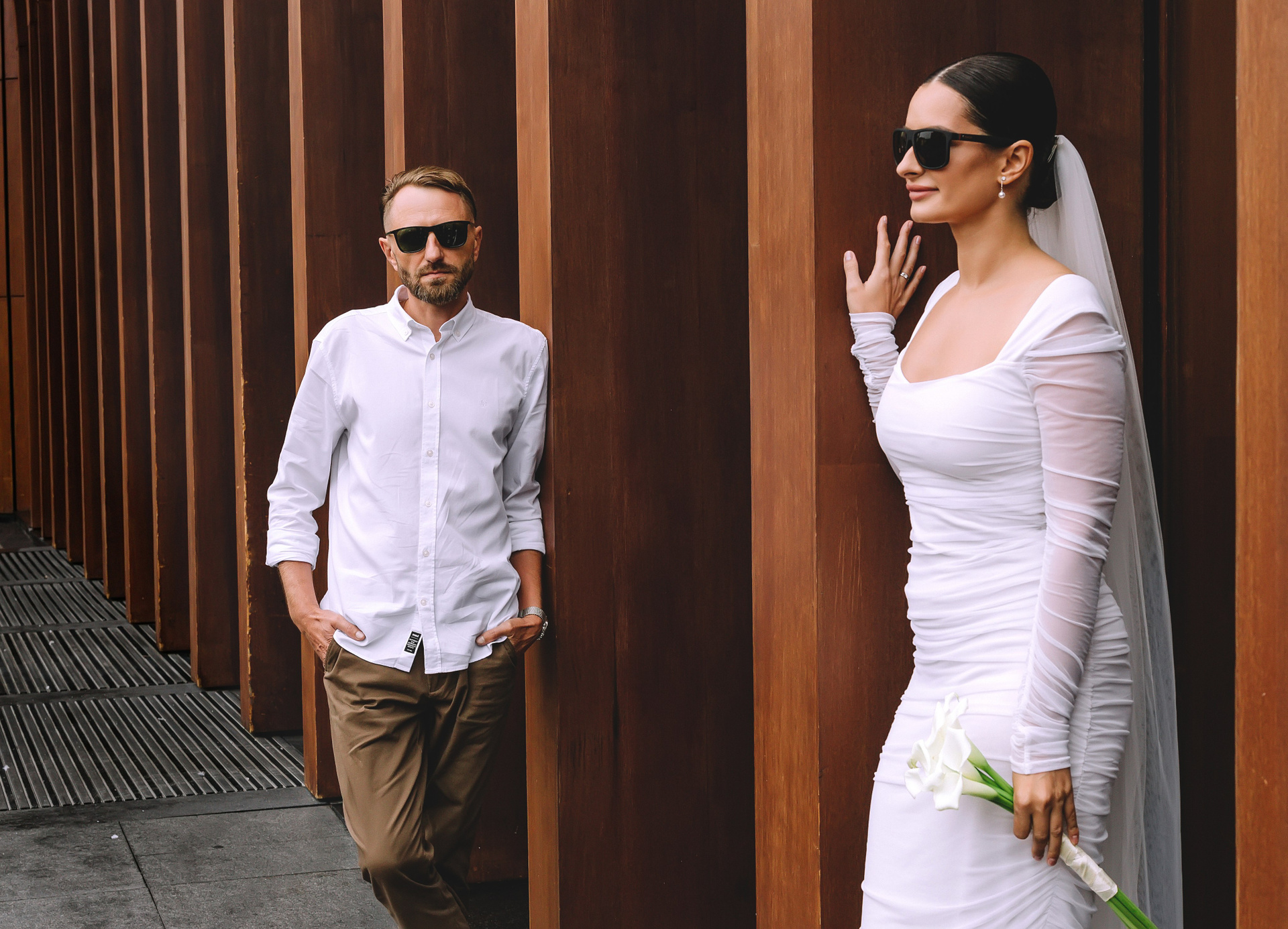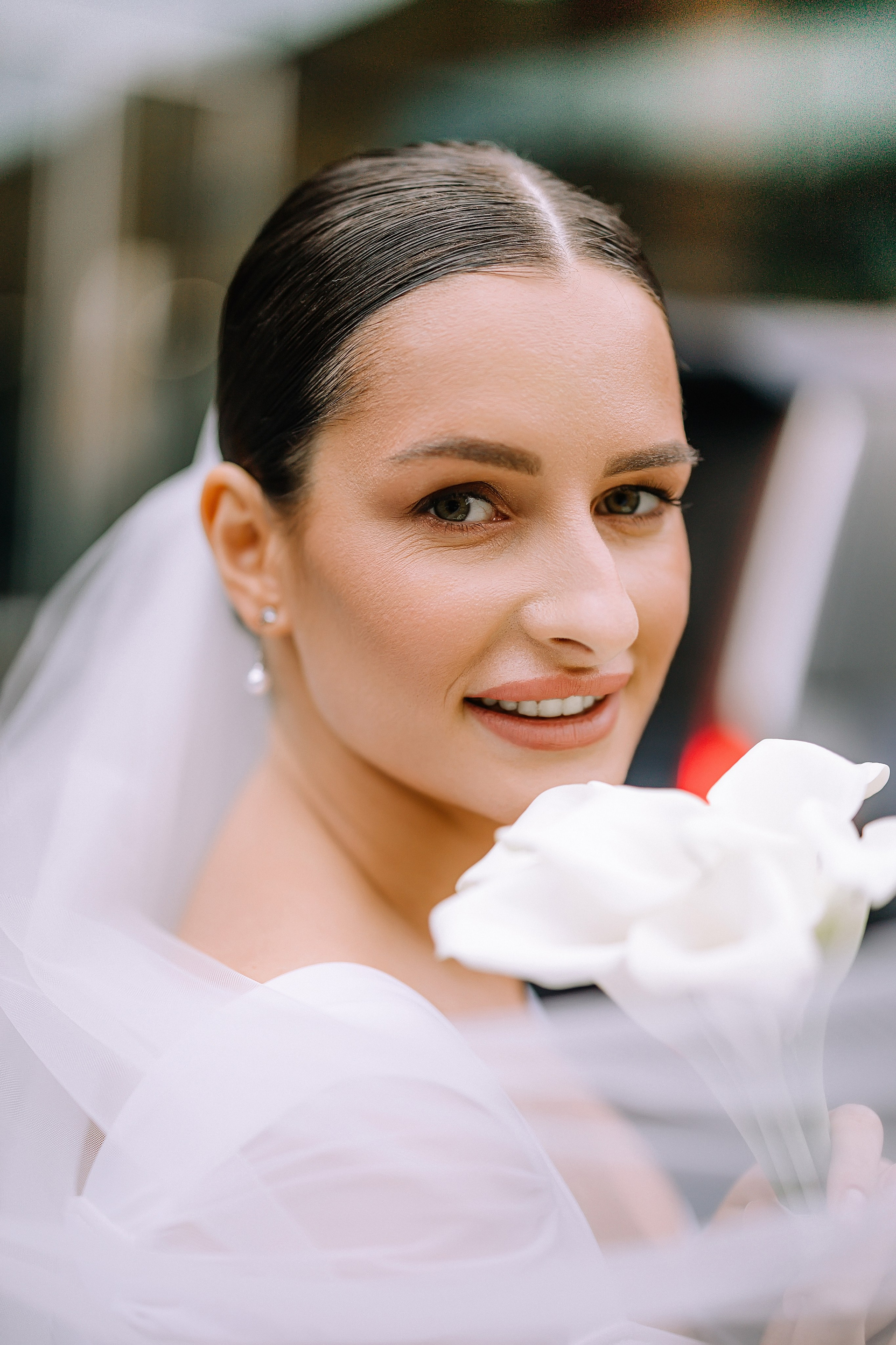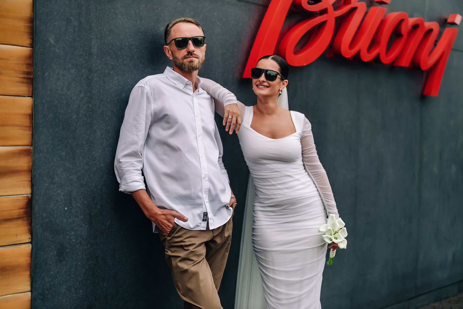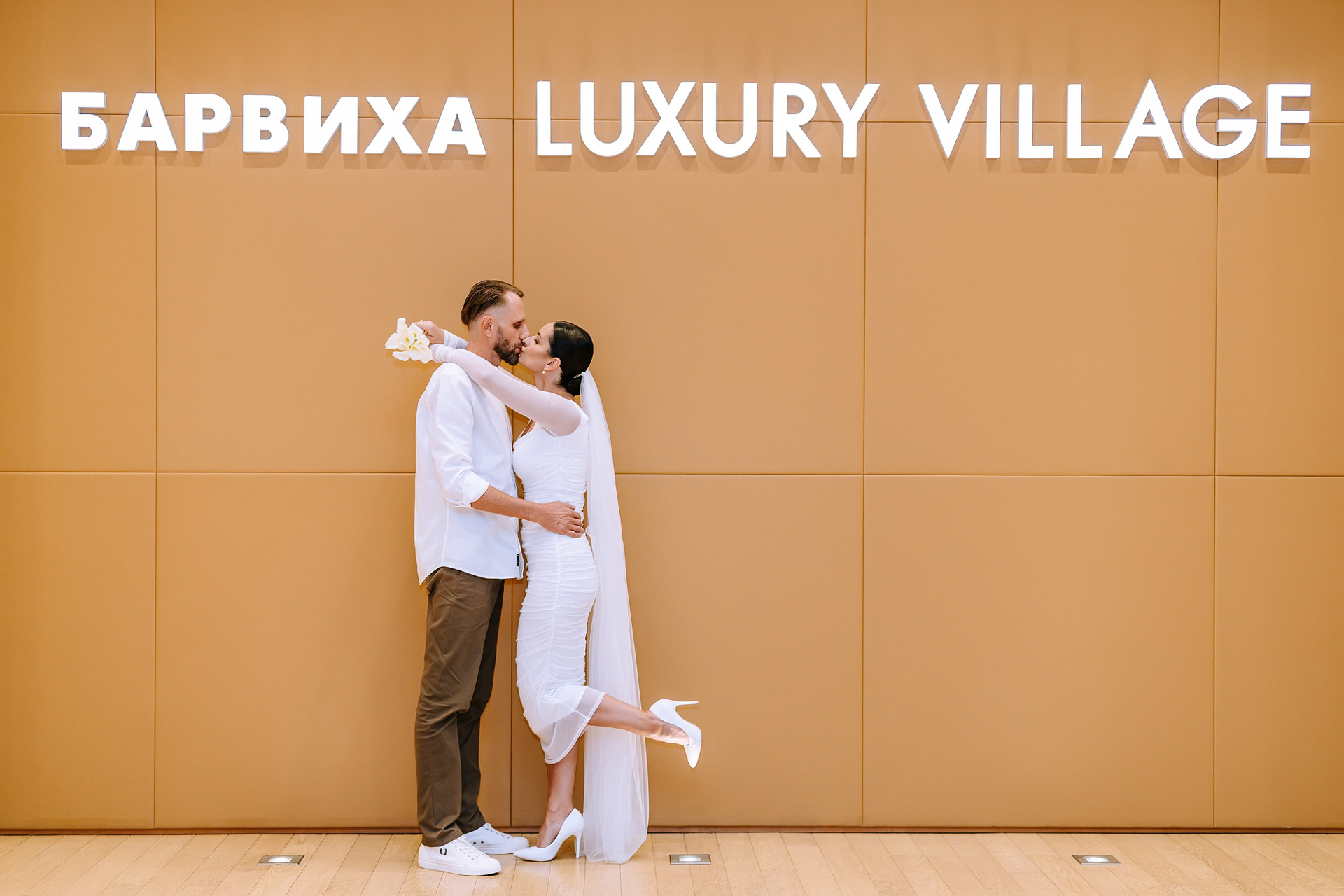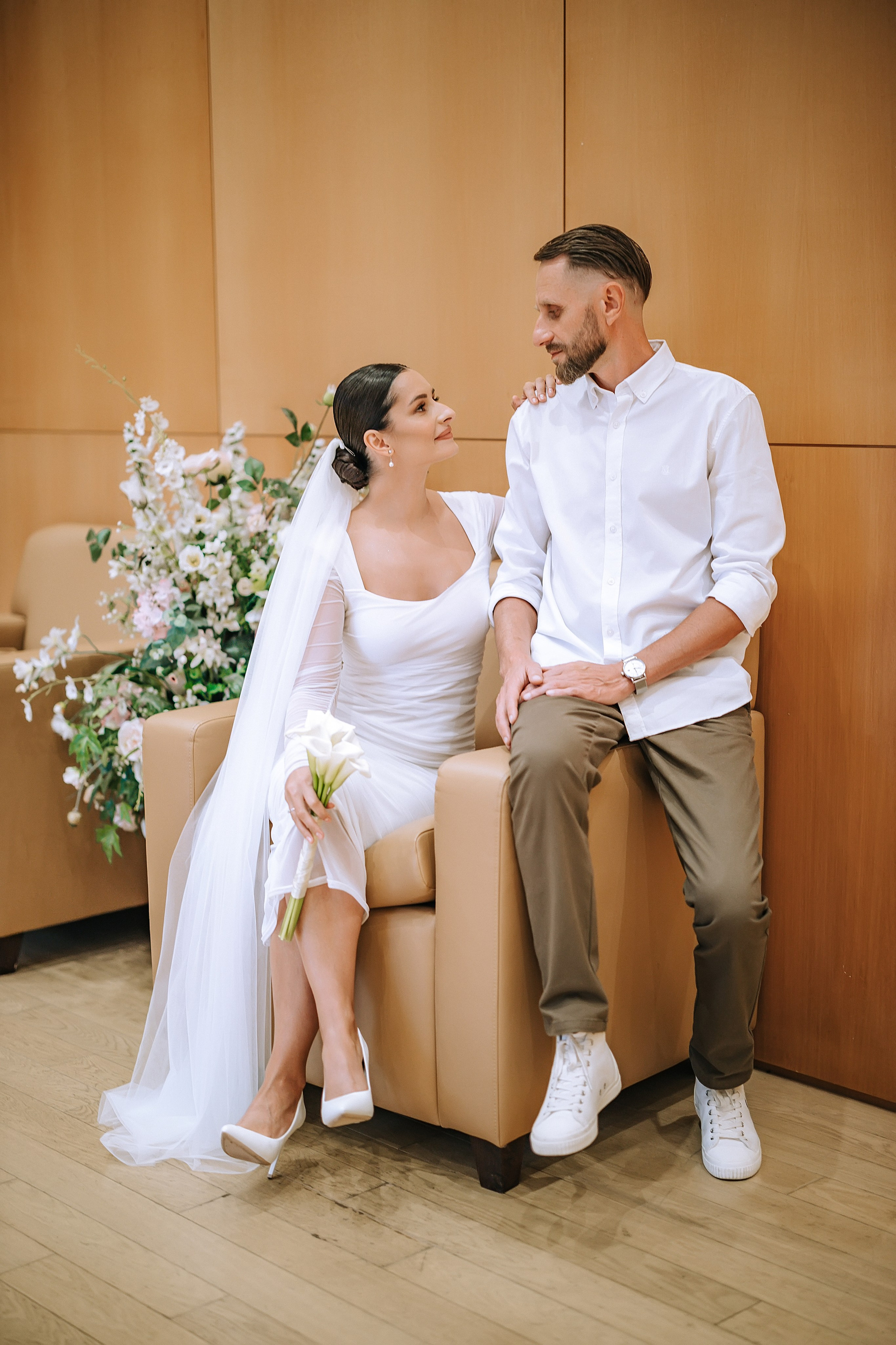 С букетом, что прижат к груди едва,